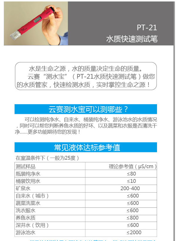 上海雷磁水質(zhì)測試筆PT-21介紹